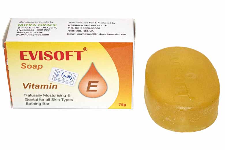 Evisoft Soap is a Naturally Moisturizing and Gental Bathing Bar for all skin types that is enriched with Vitamin E and Aloe Vera. Vitamin E is fat soluble hence penetrates skin to strengthen the outer protective skin barrier.