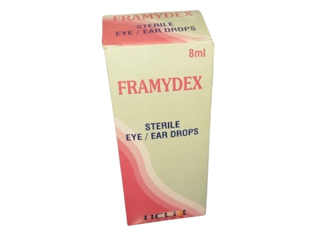 Framydex Eye/Ear Drops is a combination medication containing framycetin, an antibiotic, and dexamethasone, a corticosteroid. It is used to treat bacterial infections and reduce inflammation in the eyes and ears.